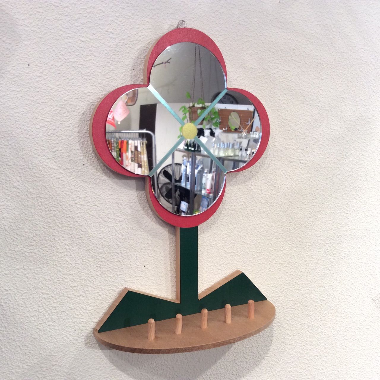 飾ってカワイイ!ウォールミラーが入荷しました! それぞれ引っかけるところがあるので、ネックレスやリング、鍵などを掛けられるようになっています。 ミラー部分はアクリルなので、軽くて割れずに安心! モチーフも可愛いので、子供部屋にもオススメです。 デザインは全部で5種類。 写真を撮ったのですが、なにせ鏡なもので・・・。