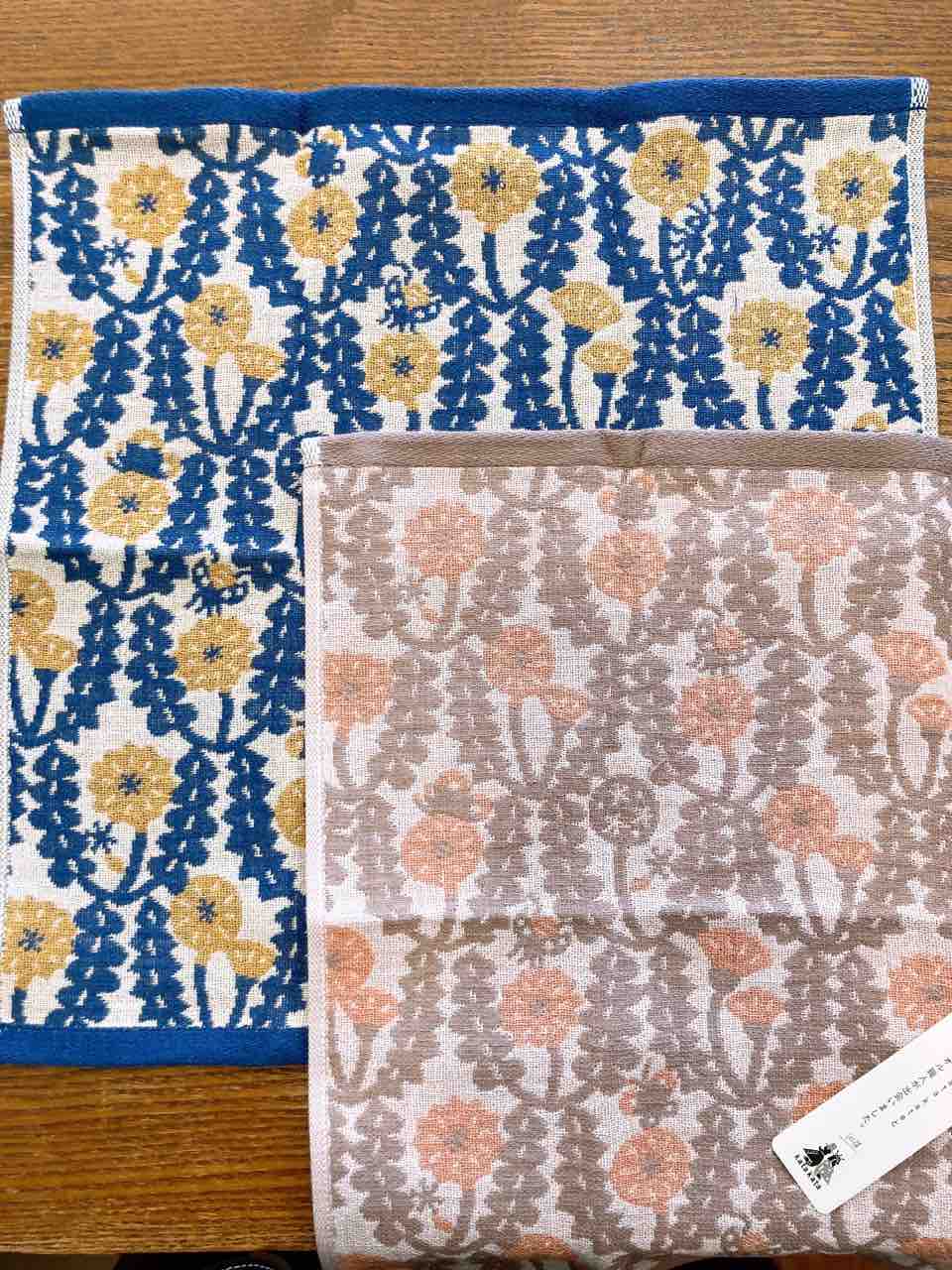 タンポポとテントウムシのデザインはハンドタオルとフェイスタオルがあります。