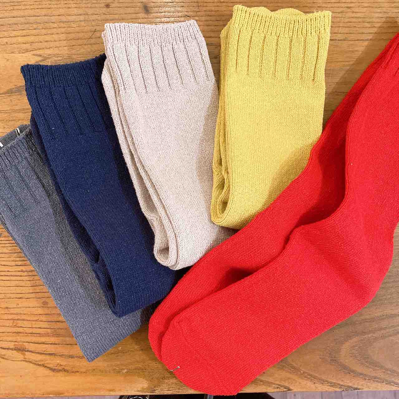 定番ソックスにしようかなと検討中のシルクのゆるっとハイソックス。