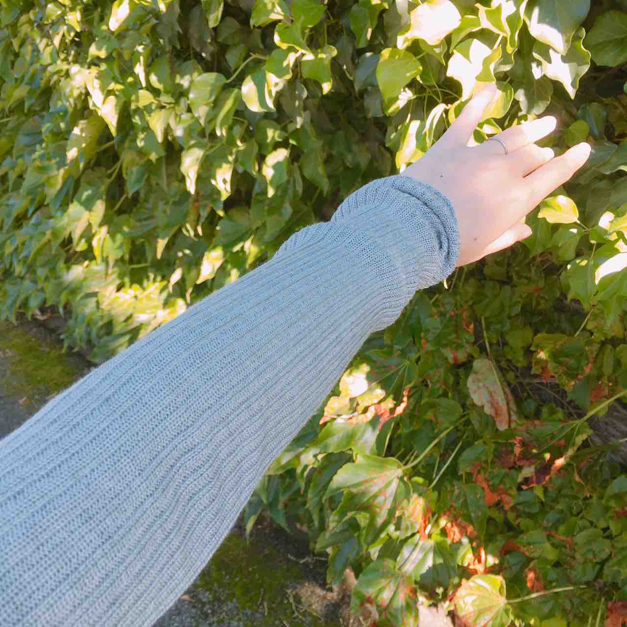 このアームカバーは伸縮率がすごく高いので、レッグウォーマーとして足にも使っていただけます。